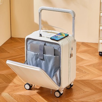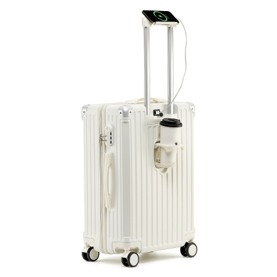 前开口设计手提箱ABS PC材料手提箱,带USB充电端口和折叠杯架