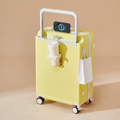 随身旅行包20寸女式旅行箱带杯架和Usb宽提手手提行李箱