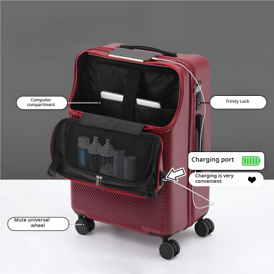 时尚高品质前开放式旅行手提箱,带USB端口和随身行李箱旅行包拉杆箱套装