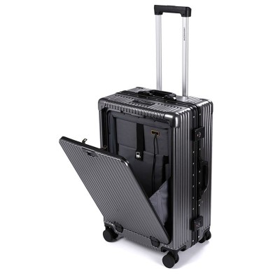 PC铝框手提箱带杯架电池座USB充电端口手提箱旅行袋20 24英寸