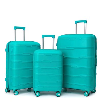 厂家批发PP材质旅行箱带360 ° 静音万向轮旅行箱硬壳轻便行李箱