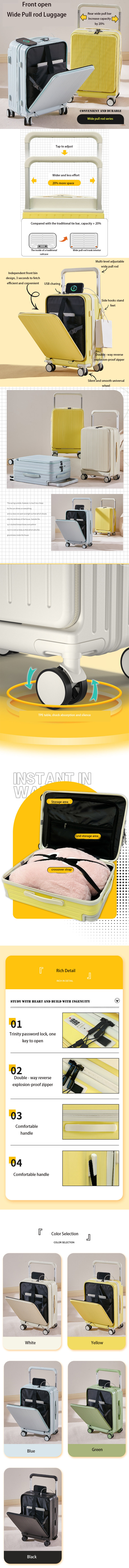 随身行李20英寸宽拉杆箱USB充电和挂钩打开行李前单独的电脑隔层行李箱