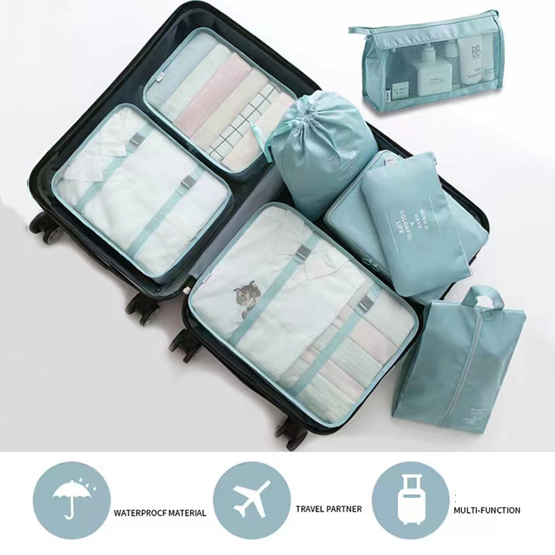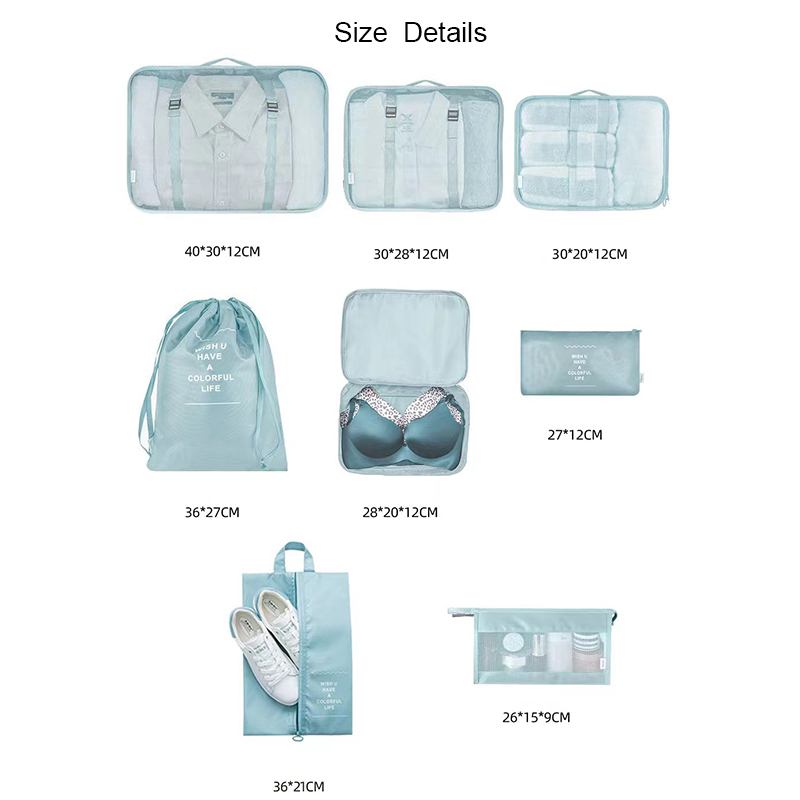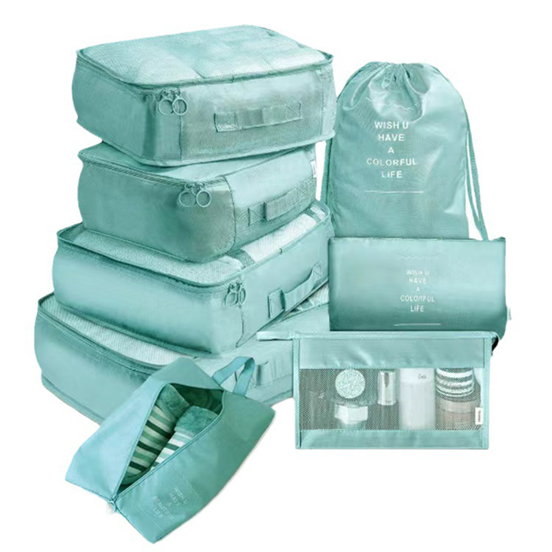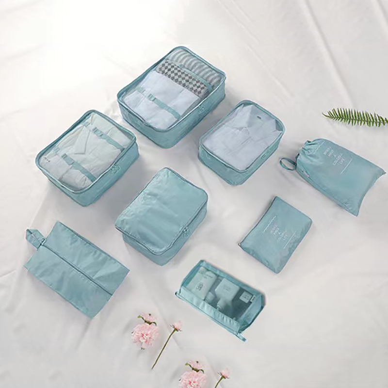 高品质斜布涤纶网8件套旅行袋收纳包套装手推车行李箱洗衣收纳包批发